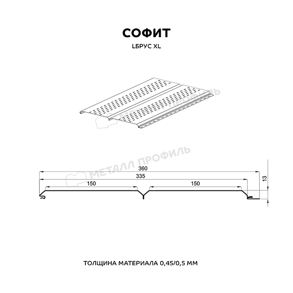 Описание товара: "Софит Металл Профиль перфор. Lбрус-XL-14х335 (ECOSTEEL_MA-12-Античный Дуб-0.45)"